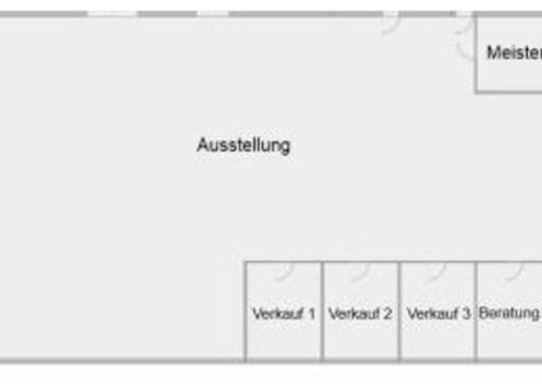 Die großzügig geschnittene und vollständig geflieste Ausstellungsfläche ist durch eine durchgehende vollflächige Fensterfront sehr hell und freundlich. Eine große Schiebetür ermöglicht das Einbringen auch größerer Gegenstände. Mehrere Verkaufs- und Beratungsräume wurden funktional abgetrennt. Die sanitären Anlagen für Damen und Herren sowie die Teeküche sind modern gefliest und in einem gepflegten Zustand.