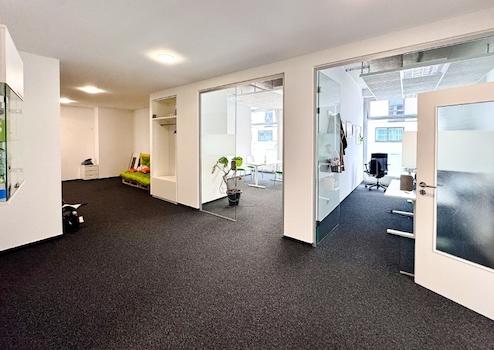 Für zusätzlichen Komfort sorgt die zum Haus gehörende Tiefgarage, die Kunden und Mitarbeitenden eine bequeme Parkmöglichkeit bietet.