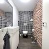 Bereits der Eingangsbereich empfängt mit einer offen gestalteten Küche, die nicht nur funktional ist, sondern auch als Treffpunkt für kurze Pausen oder informelle Gespräche dient. Die großzügige, offene Bürofläche bietet Platz für mehrere Arbeitsplätze und überzeugt mit einer stilvollen Backsteinwand, die dem Raum einen besonderen Charakter verleiht. Die offene Struktur fördert das gemeinschaftliche Arbeiten und den Austausch im Team.