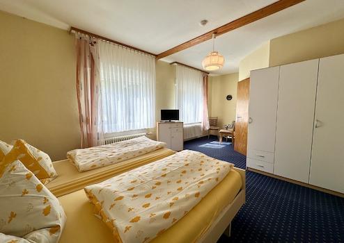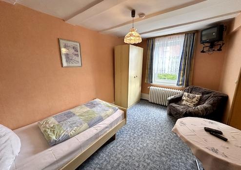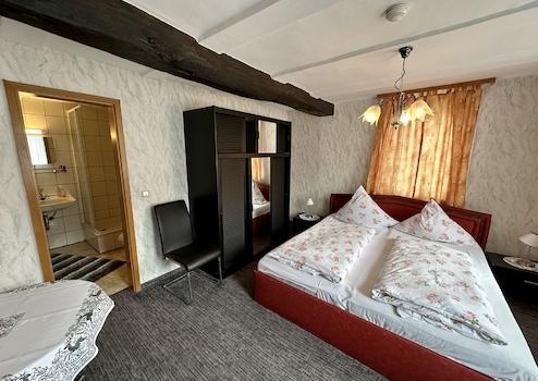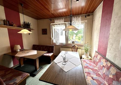 Zum Verkauf steht eine charmante und geschichtsträchtige Gaststätte mit angeschlossener Pension auf einem großzügigen Grundstück von ca. 4.942 m². Das Ensemble besteht aus einem historischen Fachwerkhaus aus dem Jahr 1863, der ehemaligen Oberförsterei, sowie einem ergänzenden Massivbau aus dem Jahr 1968. Beide Gebäude bilden zusammen eine vielseitig nutzbare Einheit mit einer gesamten Nutzfläche von ca. 425 m² und bieten sowohl Gastronomen als auch Hoteliers oder Investoren mit Weitblick attraktive Möglichkeiten. Im Erdgeschoss des Fachwerkhauses befindet sich die traditionsreiche Gaststätte, die über zwei großzügige Säle, eine Theke mit Sitzgelegenheiten sowie einen separaten Raucherraum verfügt. Die sanitären Anlagen für Gäste (Damen- und Herren-WCs) befinden sich in einem angrenzenden kleineren Massivbau. Ebenfalls im Erdgeschoss sind eine große, professionell ausgestattete Küche mit eigenem Kühlraum, ein privates Zimmer sowie ein Büroraum untergebracht. Im Kellergeschoss steht ausreichend Lagerfläche zur Verfügung, unter anderem für die Getränkelagerung. Das Obergeschoss des Fachwerkhauses beherbergt sechs gemütliche Fremdenzimmer, jedes mit einem eigenen angrenzenden Badezimmer. Ein großzügiger Balkon auf dieser Etage bietet den Gästen einen ruhigen Rückzugsort mit Blick ins Grüne und unterstreicht den einladenden Charakter des Hauses. Der angrenzende Massivbau erstreckt sich über zwei Geschosse und ergänzt das Angebot der Pension mit weiteren fünf Fremdenzimmern – zwei im Erdgeschoss, drei im Obergeschoss – ebenfalls jeweils mit eigenem Bad. Im Obergeschoss stehen den Gästen zusätzlich ein großzügiger Aufenthaltsraum sowie eine vollständig ausgestattete Gemeinschaftsküche zur Verfügung, was das Objekt auch für Gruppen oder Monteure besonders attraktiv macht. Der weitläufige Außenbereich bietet zahlreiche Nutzungsmöglichkeiten. Vor dem Gebäude befindet sich ein großer Hof mit mehreren Stellplätzen für Gäste. Hinter dem Haus lädt eine großzügige Garten- und Sitzfläche zum Verweilen ein. Ein weiterer Hofbereich mit einer gut erhaltenen Scheune sowie einem traditionellen Backhaus bietet Raum für besondere Veranstaltungen oder zusätzliche Nutzungsideen. Diese gepflegte und vielseitig nutzbare Immobilie verbindet historischen Charme mit funktionaler Ausstattung und liegt eingebettet in ruhiger, naturnaher Umgebung. Ob klassischer Gastronomiebetrieb, Pension mit Eventcharakter oder individuelle Neuausrichtung – dieses Anwesen bietet eine solide Basis und viel Potenzial für unternehmerische Ideen. Sind Sie neugierig geworden? Dann rufen Sie uns doch einfach für nähere Informationen oder die Vereinbarung eines Besichtigungstermins an! Bitte sehen Sie sich auch unseren virtuellen 360°-Rundgang zu dieser Immobilie an! So bekommen Sie bereits vorab einen realistischen Eindruck von den Gegebenheiten vor Ort.