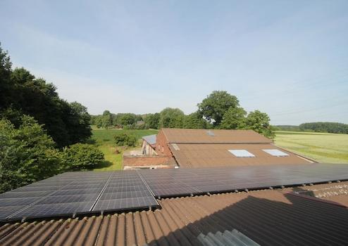 Photovoltaik: Hofdächer mit Photovoltaik und Batteriespeicher im Keller, Baujahr 2021