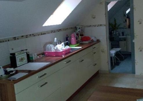 Wohnung 2 Obergeschoss bestehend aus großer Wohnküche, Bad mit Dusche und Fensterund ein Schlafzimmer mit Abstellkammer.