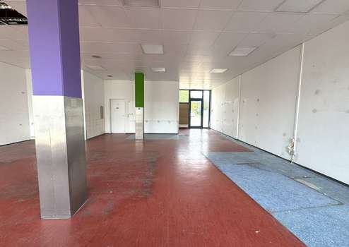 Die großzügige Fläche überzeugt insbesondere durch ihre großen Fenster an der Straßenseite, die für eine helle und einladende Atmosphäre sorgen.