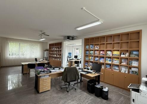 Repräsentative, freistehende Immobilie, helle und modern ausgestattete Räume, großzügiger Empfang, Großraumbüro (gesamt auch als Ausstellungsfläche nutzbar), Granitfußbodenoberbelag, elektrische Rollläden mit Zeitschaltuhr, fußbodentiefe Fensterelemente, separate Büroräume mit Fliesenoberbelag, Damen und Herren WC jeweils mit Dusche und Tageslicht, Küche, Klimaanlage teilweise vorhanden, Übernahme vorhandener Büromöbel möglich, Gaszentralheizung.
