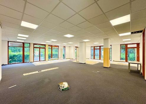Die Grundrissgestaltung ist nahezu vollständig frei wählbar – lediglich vier Stützen und die großzügigen Fensterfronten geben einen leichten Rahmen vor. Alle Räume können individuell geplant und ausgestattet werden, sodass sich sowohl Büros als auch Praxis- oder Behandlungsräume optimal realisieren lassen.