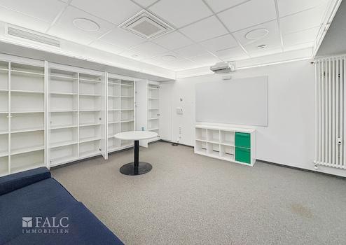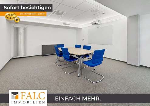 Ein besonderes Highlight ist der separate Besprechungsraum, der durch seine moderne, helle Ausstattung besticht und sich ideal für Kundengespräche oder interne Meetings eignet. Der Sanitärbereich ist zeitgemäß ausgestattet und fügt sich harmonisch in das Gesamtbild ein.
