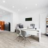 Die glatt gespachtelten Wände und der hochwertige Vinylboden in Diele-Optik schaffen eine helle, freundliche Arbeitsatmosphäre. Der großzügige Hauptraum bietet problemlos Platz für bis zu vier vollwertige Arbeitsplätze und lässt sich individuell gestalten – ob als klassisches Büro, moderne Agentur oder Beratungsumgebung.
