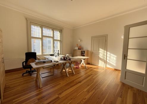 Diese imposante Villa ist funktional in einzelne Büroräume aufgeteilt, die durch ihre Helligkeit und eine angenehme Arbeitsatmosphäre überzeugen.