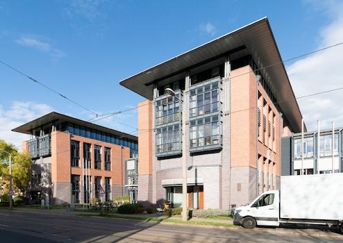 Direkt vor dem Gebäude befinden sich Straßenbahn- und Bushaltestellen, die eine ideale Anbindung an den öffentlichen Nahverkehr garantieren.
