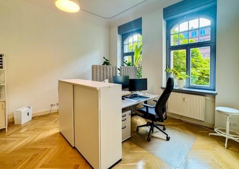 In der zentrumsnahen Südvorstadt dominieren neben erhaltenen Stadtvillen auch Gebäude aus der Nachkriegszeit. Die Bürofläche befindet sich unweit des "Nürnberger Ei". Die Technische Universität befindet sich in der unmittelbaren Nachbarschaft und in nur fünf Minuten hat man den Hauptbahnhof erreicht. Die Straßenbahnlinien 8 und 3 sind fußläufig sehr gut zu erreichen. Auch mit dem Auto ist eine gute Erreichbarkeit gewährleistet, die A17 befindet sich unweit vom Objekt.