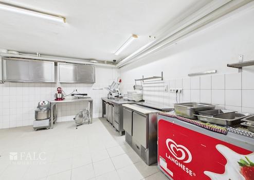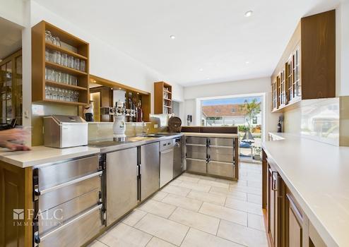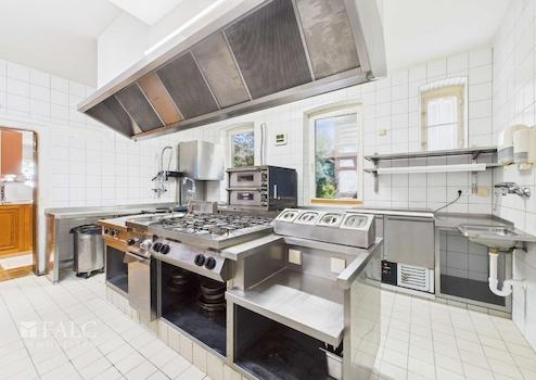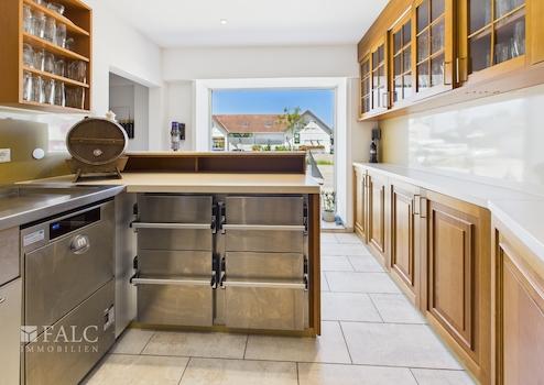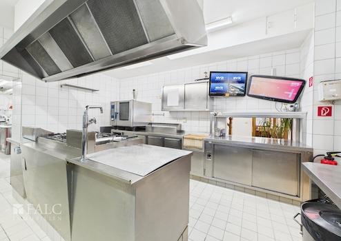 Die Küche ist professionell ausgestattet und auf einen vollwertigen Gastronomiebetrieb ausgelegt. Mit Kochbereich, separatem Vorbereitungsraum sowie einem Kühlraum bietet sie optimale Bedingungen, um kulinarische Köstlichkeiten auf höchstem Niveau zuzubereiten.