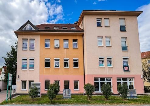 Das moderne Wohn- und Geschäftshaus liegt im Süden von Dresden, im Stadtteil Leubnitz-Neuostra, an der Grenze zu Strehlen. Es ist eine gefragte Wohn- und Geschäftsgegend.