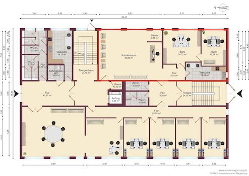 Die angebotene Gewerbefläche erstreckt sich über großzügige 122 Quadratmeter und befindet sich im Lorenzweg 56, in einem renommierten Bürokomplex in der Nähe der Magdeburger Innenstadt.