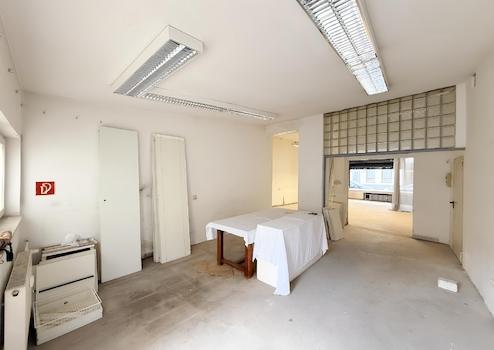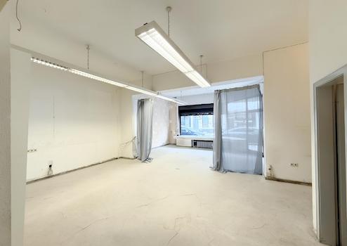 Bereits beim Betreten überzeugt die Einheit durch ihre große Schaufensterfront, die nicht nur für eine ausgezeichnete Sichtbarkeit im Straßenbild sorgt, sondern auch für helle, lichtdurchflutete Innenräume. Der Hauptbereich ist offen gehalten und wird ergänzt durch einen separaten hinteren Raum, der sich ideal als Lager, Werkstatt oder Besprechungsraum nutzen lässt.
