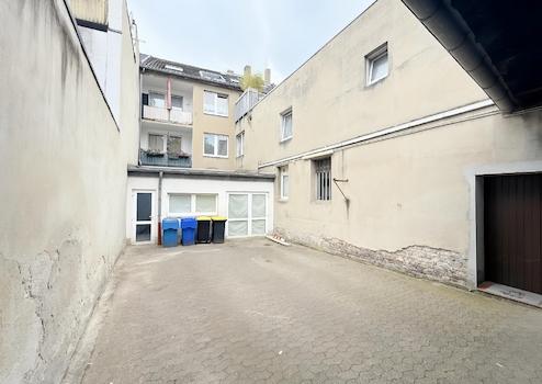 Ein weiteres Plus: Die Zufahrt zum Hofbereich ist durch ein Tor gesichert und schafft zusätzliche Möglichkeiten für Anlieferung, Stellplätze oder private Nutzung.