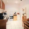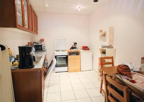 Die zweite Einheit kann ebenfalls eigenständig genutzt werden und verfügt ebenfalls über eine eigene Sanitäreinrichtung. Besonders hervorzuheben ist die angeschlossene Hoffläche, die exklusiv dieser Einheit zugeordnet ist. Hier stehen zwei Pkw-Stellplätze zur Verfügung, die auch als Anlieferzone oder für andere geschäftliche Zwecke genutzt werden können. Der Zugang erfolgt über den rückwärtigen Bereich der Immobilie.