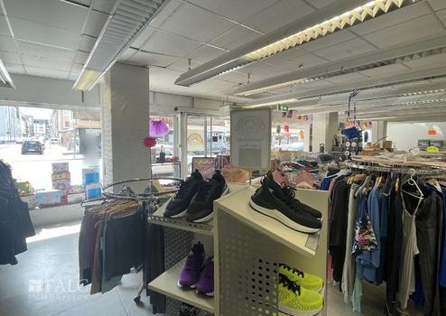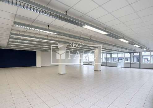 Durch den Haupteingang betreten Sie den weitläufigen Verkaufsraum mit ca. 385 m² Fläche. Die über 20 Meter lange Schaufensterfront bietet ideale Voraussetzungen zur Präsentation Ihrer Produkte und sorgt für maximale Außenwirkung. Links am Gebäude befindet sich ein separater Anlieferungsbereich mit Zugang zu einem Lastenaufzug, der den Keller und das Obergeschoss miteinander verbindet und so für eine reibungslose Logistik sorgt.