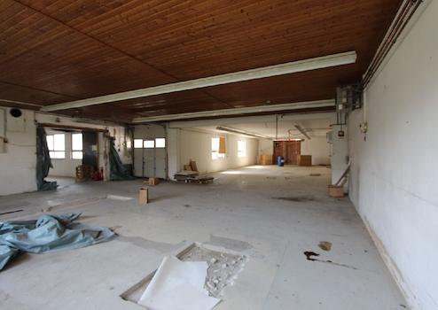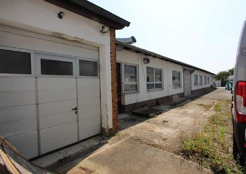 Zum Verkauf steht eine vielseitig nutzbare Liegenschaft bestehend aus einer ca. 500 m² großen Produktionshalle mit drei separierbaren Abschnitten und einem kleinen Bürotrakt (ca. 40 m²) sowie einem unterkellerten Zweifamilienhaus mit zwei 3-Zimmer-Wohnungen à ca. 95 m².