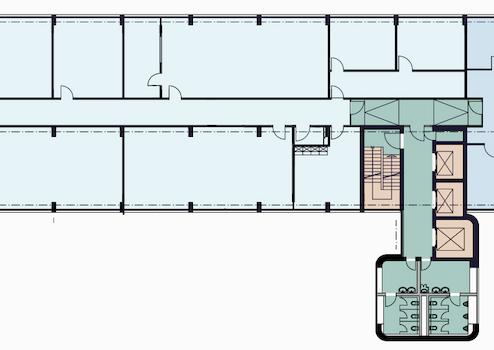 Das 8-geschossige Hochhaus in verkehrstechnisch günstiger Lage wurde komplett umgebaut und modernisiert. Der neue eingangsbereich im Service-Turm des Gebäudes setzt mit seiner raumhoch verglasten Lobby starke Akzente. Auch der Vorraum der Personenaufzüge folgt dem Konzept des gesamten OrangeOffice - einfach einladend.