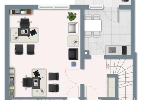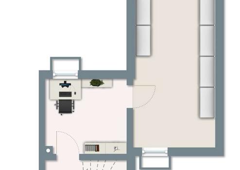 Einheit 1 umfasst rund 41 m² und besticht durch ihre funktionale Raumaufteilung. Beim Betreten der Einheit gelangt man zunächst in einen Flur, von dem aus geradeaus ein kleiner Raum mit integrierter Küche zugänglich ist. Linker Hand befindet sich das Büro, das über einen direkten Zugang zum eigenen WC mit Toilette und Waschbecken verfügt. Zur Einheit gehört ein Kellerbereich mit etwa 26,70 m², welcher aus zwei Räumen besteht: Der erste Raum bietet dank eines Fensters mit Tageslichteinfall die Möglichkeit, ein weiteres kleines Büro einzurichten. Der angrenzende Raum eignet sich hervorragend als Lagerfläche. Die Räume sind beheizt.