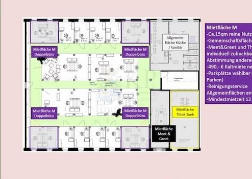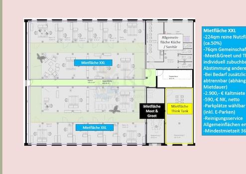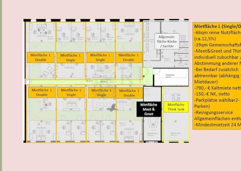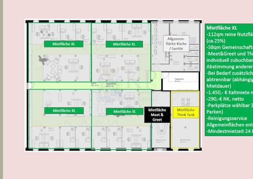 Je nach Vermietung gibt es im Zentrum der Fläche noch eine Möglichkeit neuer Räume für Seminare/Events,etc.