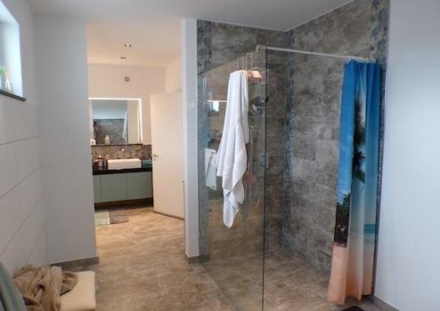 - Hochwertige Bodenbeläge: Fliesen, teils Parkett
