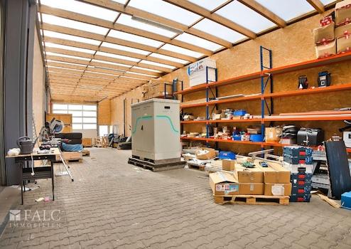 Dieses hochwertige Gewerbeobjekt bietet auf einem ca. 1.550 m² großen Grundstück sechs im Jahr 2012 errichtete, moderne Halleneinheiten. Derzeit sind die Einheiten zu drei großzügigen Hallen zusammengelegt, was eine flexible Nutzung und optimale Flächenaufteilung ermöglicht.