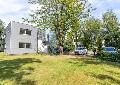 Das zweigeschossige Gebäude mit Flachdach und einer modernen Optik mit einer Fassade aus Edelstahl- Wellblech verfügt über eine Gesamtnutzfläche von ca. 580 m². Aufgeteilt auf eine ca. 245 m² große Erdgeschoss-/, eine ca. 248 m² große Obergeschoss-/ sowie zusätzlich eine ca. 87 m² Kellerfläche, bietet es großzügige und vielseitig nutzbare Flächen. Die Grundrisse wurden bislang teilweise massiv und teilweise durch Ständerwände unterteilt, sodass eine flexible Anpassung an individuelle Anforderungen ob Büro, Praxis, Labor, Showroom oder kombinierte Nutzung problemlos möglich ist.