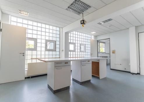 Zuletzt wurde das Objekt als Labor genutzt: Gas- und Wasseranschlüsse in vielen Räumen, ein Transportaufzug für Kleingüter, eine (aktuell nicht genutzte) Belüftungsanlage sind vorhanden, sodass eine schnelle Inbetriebnahme für ähnliche Zwecke erleichtert wird.