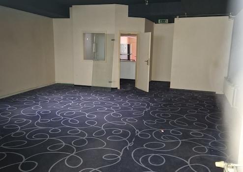 Es handelt sich um repräsentative Gewerberäume mit zwei Eingangsbereichen in der Passage im EG jeweils mit Treppenaufgang in die eigentlichen Gewerberäume die optisch in zwei Bereiche mit jeweils ca. 125 m² getrennt sind. Des Weiteren befinden 2 Toilettenbereiche im OG.