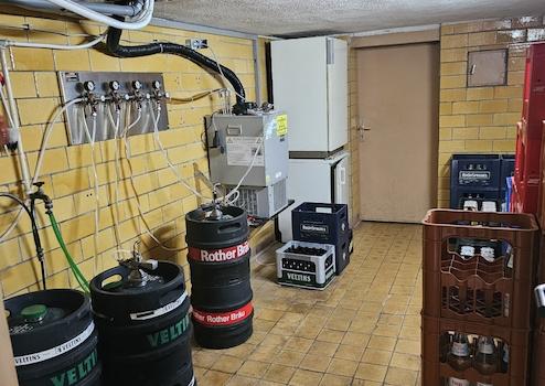 Die stilvollen Dielen und Fliesen als Bodenbeläge sind nicht nur pflegeleicht, sondern verleihen dem Raum auch eine harmonische und warme Ausstrahlung. Die Dielen bringen eine natürliche Eleganz und sind angenehm fußwarm, während die Fliesen robust und pflegeleicht sind, was in einem Gastronomiebetrieb von großer Bedeutung ist. Die Zentralheizung mit Gasbefeuerung sorgt für eine effiziente und gleichmäßige Wärmeverteilung, die auch an kalten Tagen eine behagliche Atmosphäre schafft.