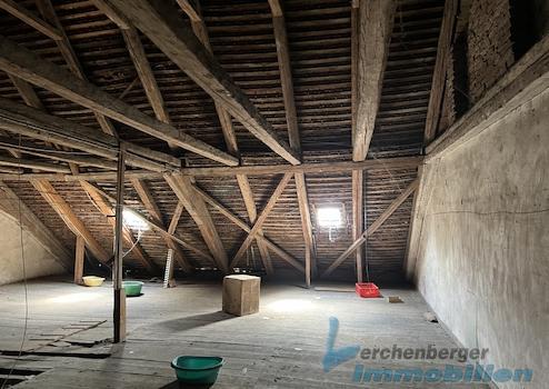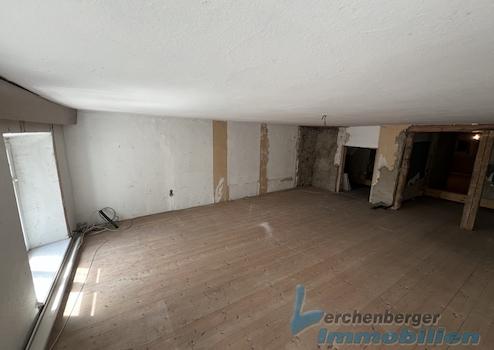Im Obergeschoss befand sich früher eine kleine Betreiberwohnung mit ca. 57 m² Wohnfläche sowie eine höhenversetze Nutzfläche mit 70 m² und dem Zugang zum Dachboden.
