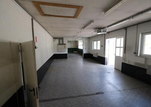 HALLE, 100qm, Höhe: 3,86 m, Tor: 3,86 m hoch und 3,99 m breit, 100 qm, geeignet als Lager und für Produktion (keine KFZ-Rep.), Strom (3 x 16 A) vorhanden, Wasser, ohne Heizung. Miete 440,--