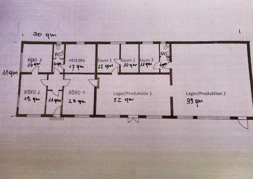 Das Gebäude steht auf einem gewerblich genutzten Gelände, eingezäunt mit abschließbarem Tor, Videoüberwachung und Bewegungsmelder. Der Betrieb kann von Kunden und Lieferanten bequem angefahren werden.