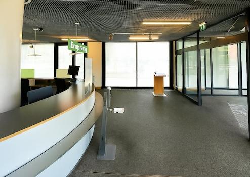 Sie alle sind durch ein modernes, glasüberdachtes Atrium verbunden und profitieren von der exklusiven Ausstattung des WTCs - ein 24 h besetzter Empfang, Klimaanlagen, Sonnenschutz, zwei Aufzüge pro Treppenaufgang und ausgestattete Teeküchen.