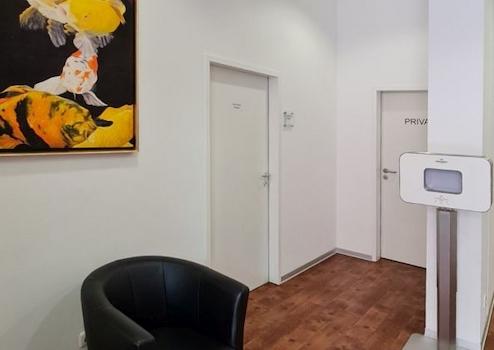 Aufgrund des großen Schaufensters im Wartezimmer sowie der zentralen Lage ist auch eine Nutzung als Verkaufsbüro oder Ausstellungsfläche möglich.