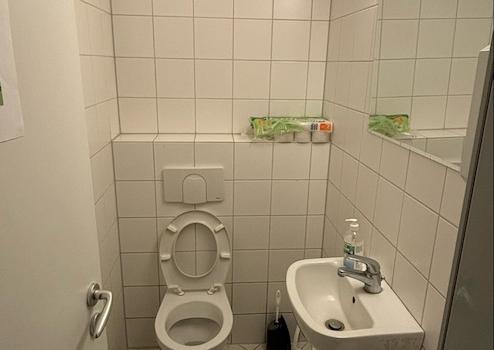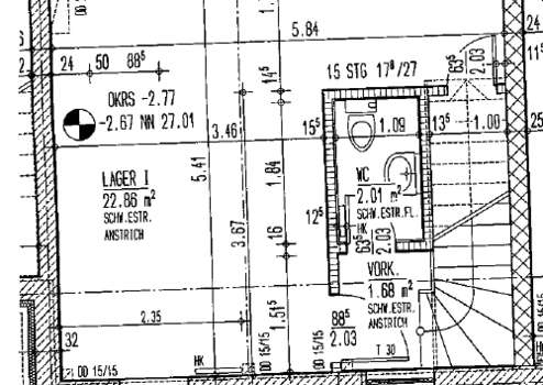 Ein eigener Treppenabgang führt in das Untergeschoss, das neben einem praktischen Abstellraum auch ein separates WC bietet – ideal für zusätzlichen Stauraum und Funktionalität.