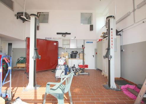 80 M² GR. PROFI-WERKSTATT ODER KÜNSTLERATELIER MIT HEBEBÜHNE, BÜRO, WC, LAGER, ST.PL.&SEP. CONTAINER