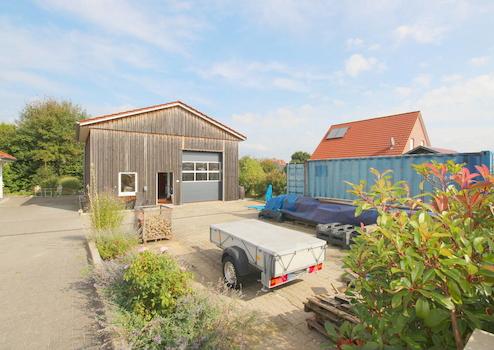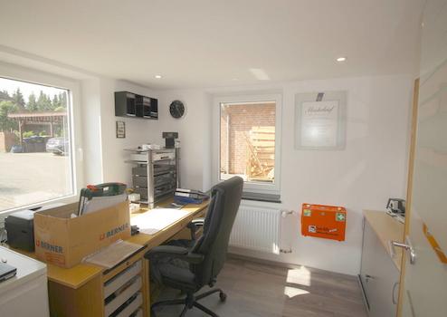 Auf einem großzügigen Grundstück von etwa 650 m² bietet die Werkstatt mit 1,5 Etagen und insgesamt rd. 80 m² Nutzfläche zzgl. sep. Container ausreichend Platz als vielfach zu verwendende Werkstatt mit großem Außenbereich. Der Boden ist mit robustem Vinyl (Büro), eleganten Fliesen (Werkstatt u. WC) und widerstandsfähigem Holz (Lager) ausgestattet, was sowohl praktische als auch ästhetische Ansprüche erfüllt. Das Objekt ist zudem mit einem Gäste-WC ausgestattet, ein Vorteil, der Ihnen und Ihren Kunden zusätzlichen Komfort bietet.