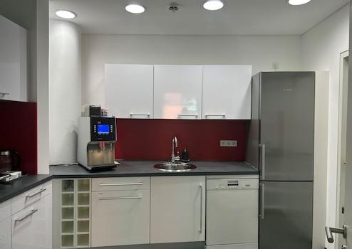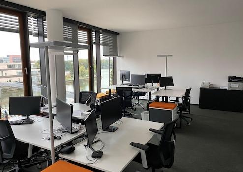 Unsere Büros bieten Ihnen volle Kostentransparenz: Reinigung, Stromversorgung und ein ultraschneller 1.000-MBit-Internetzugang sind ebenso enthalten wie Kaffee, Wasser und Tee. Zudem stehen voll ausgestattete Büroflächen zur Verfügung, wie auf den Bildern ersichtlich. Für Sie bedeutet das: keine versteckten Kosten oder Provisionen – nur ein fester monatlicher Mietpreis von netto 1.700 €.