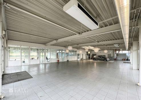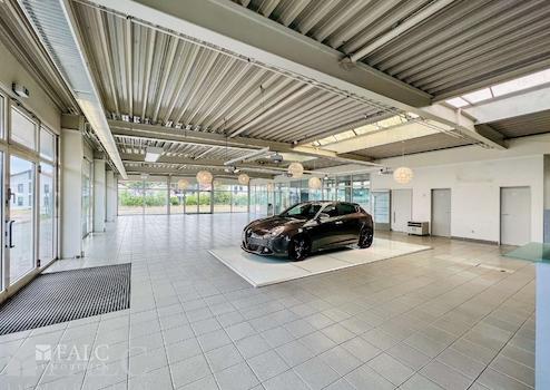 Das Gebäude überzeugt vor allem durch den etwa 408 Quadratmeter großen und lichtdurchfluteten Showroom. Dieser ist mit einem Empfangs- und Wartebereich für Ihre Kundinnen und Kunden sowie mit fünf Büroräumen ausgestattet. Dank der großen Schaufensterfronten ist der Verkaufsraum sowohl vom Parkplatz als auch von der vorbeiführenden Straße bestens einsehbar – ideale Voraussetzungen also, um Ihre Fahrzeuge wirkungsvoll zu präsentieren.