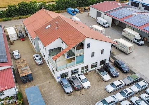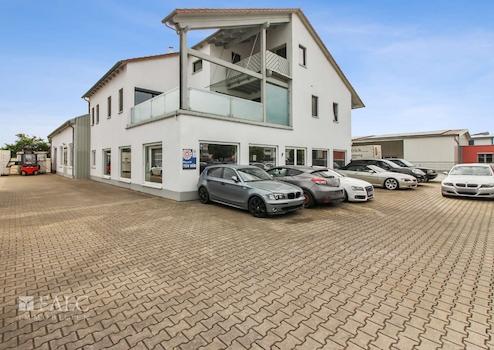 Linker Gebäudeteil (Baujahr 2002): Hier finden Sie moderne Büroräume sowie eine vollständig ausgestattete Lackiererei mit allen erforderlichen Sozialräumen – sofort nutzbar für den Start oder die Erweiterung Ihres Gewerbes.