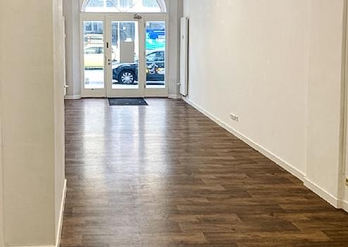 In einem denkmalgeschützten Wohn- und Geschäftshaus steht eine vielseitig nutzbare Ladenfläche zur Verfügung.