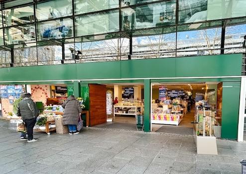 Über eine Rolltreppe sind beide Ebenen verbunden.