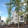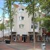 Im Fußgängerweg steht dieses gemischt genutzte Mehrparteien-Haus, in dem sich die zu vermietenden Räume befinden.