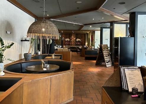 Die Gastraumfläche bietet Platz für etwa 120 Gäste, inklusive der einladenden Terrasse, die auf einem großzügigen Vorplatz liegt und zur Straße hin ausgerichtet ist – ideal für vorbeilaufende Passanten.