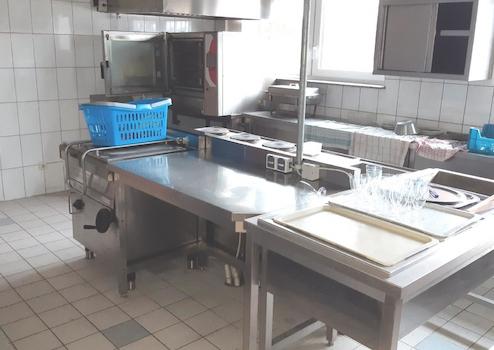 Die zu vermietenden Küchen-, Cateringräume befinden sich im Erdgeschoss eines Betriebsgebäudes.