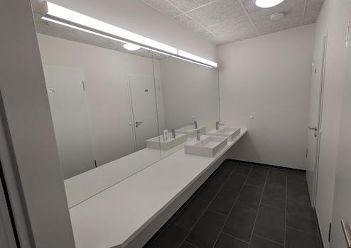 - jedes Büro mit Toiletten und 1 Bad mit Dusche