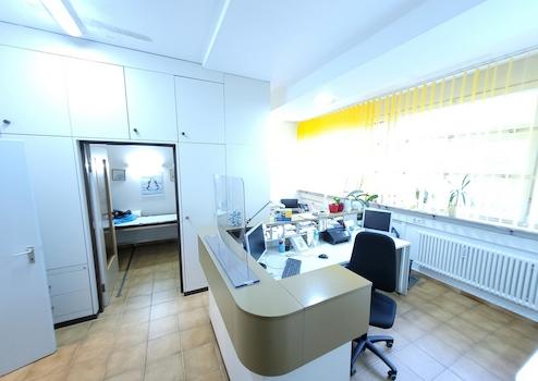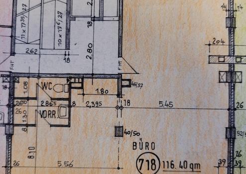 Die zum Verkauf stehenden Büroräume mit einer Nutzfläche von 116,4 qm, die zuletzt vom Eigentümer als Arztpraxis genutzt wurden, befinden sich in der ersten Etage.