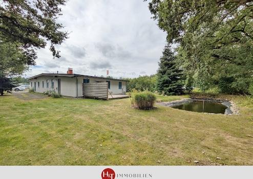 Der Außenbereich ist ebenso durchdacht gestaltet: Eine gepflegte Rasenfläche mit großem Teich ziert den rückwärtigen Garten, während die geschotterte Parkfläche im vorderen Bereich ausreichend Stellplätze für zahlreiche Fahrzeuge bietet.